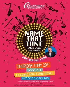 *Excluding specialty cocktails and some premium liquor. ONLY in Calandra’s Mediterranean Grill’s Lobby & Side Patio.